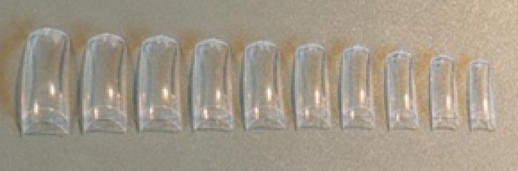Durchsichtiger, weniger flexibler Designer?Tip. Gerade Form, leicht gebogen. Als Basis für Naildesign oder French Modellage.
