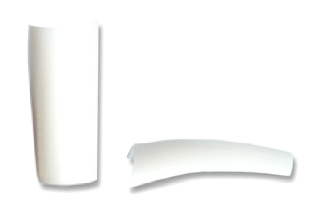 Weiße Tips für permanente French Manicure. Die Tips werden aufgeklebt, mattiert und nicht flachgefeilt. Natürliche Wölbung. Sehr kurze, dünne Kontaktzone. Leicht konisch zulaufende Form.